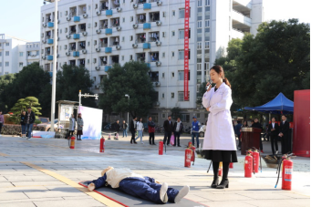 模拟演习结束后,消防官兵介绍并演示了灭火器等消防器材的使用。现场观众积极参与教学实践,运用学到的消防器材的使用方法,亲身体验和参与了模拟火灾的扑救。最后,“健康中南”宣讲团的成员为观众讲解了心肺复苏(CPR)的流程,纠正了常见的不规范操作,并邀请观众上场运用CPR对医用假人进行施救,现场反响热烈,氛围良好。