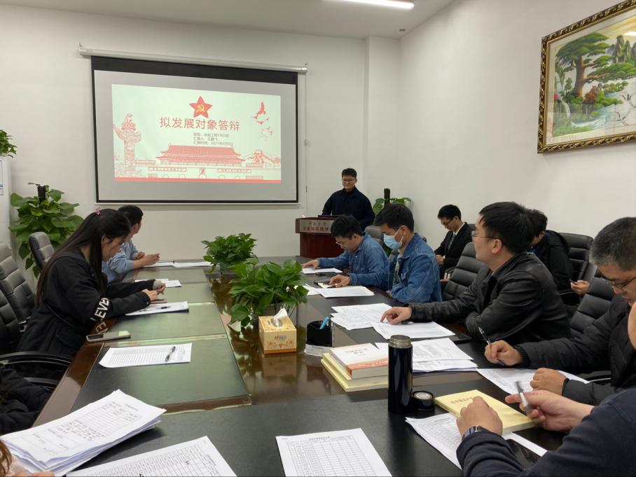 必威 深入开展党史学习教育,考察和了解党员发展对象对党的理论知识掌握情况和入党动机,严把党员发展入口关,确保党员发展质量。2021年4月9日,必威 发展对象答辩会于金贵楼206召开,必威 党委副书记张凯、本科生党支部书记、学生支委及答辩对象出席了本次答辩会。