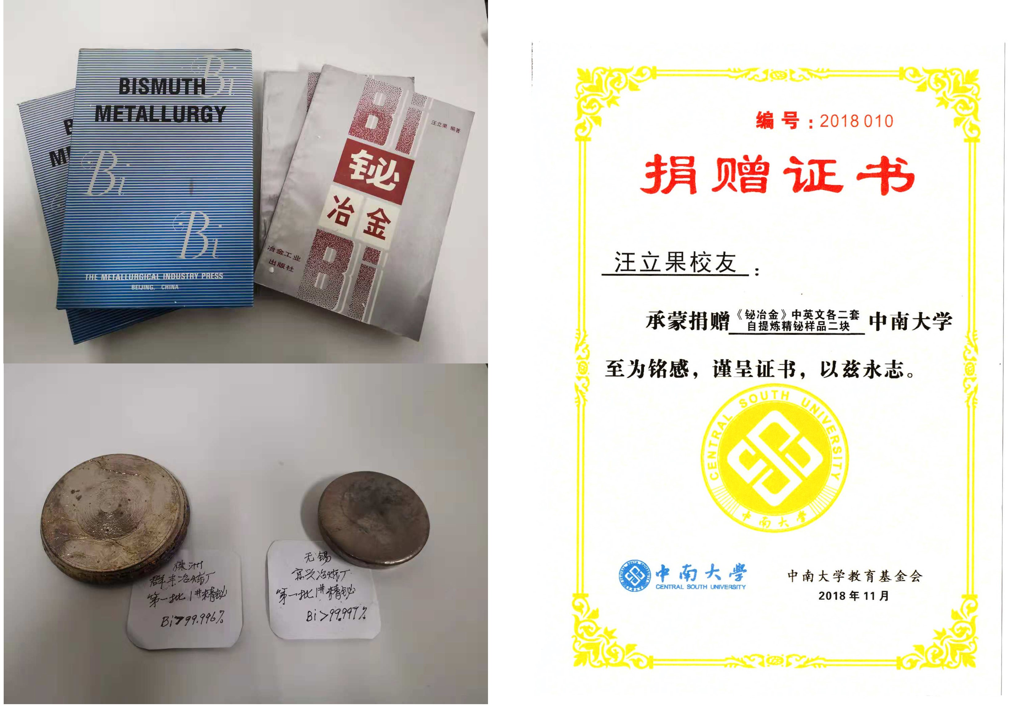 为丰富必威 冶金博物馆的藏品,汪立果校友于2018年11月5日向学院捐赠以下物品: